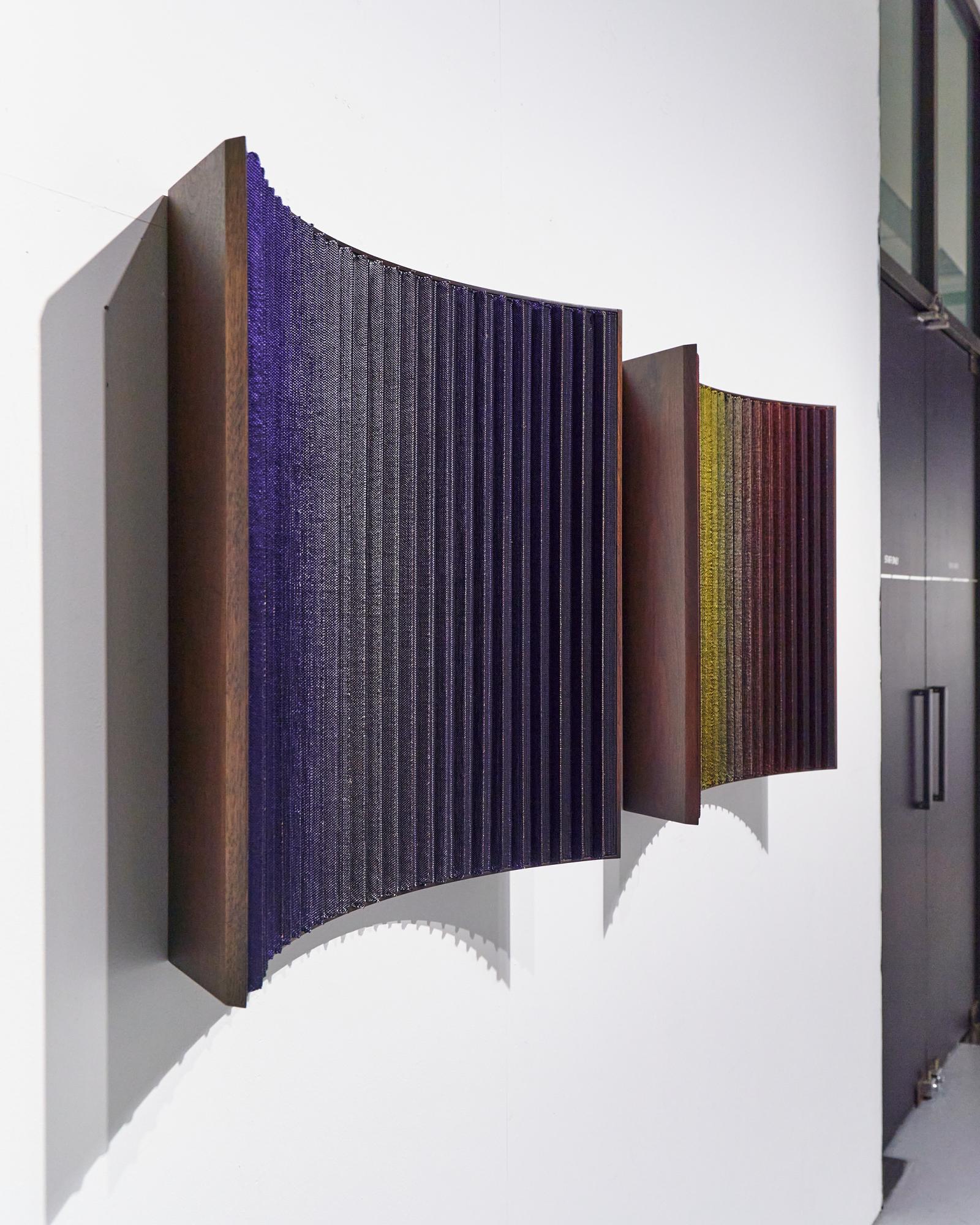 <소리-색 알고리즘: 불정역>, <Weave Wave 25_black 시리즈>는 잊혀진 공간에서 채집된 소리를 진동수를 기반으로 변환된 디지털 코딩, ‘소리-색 알고리즘’을 활용한 직조부조 작업이다. 빛을 은유하는 실의 교차와 집적, 그리고 데이터를 기반으로 재조합된 직조부조로 디지털과 아날로그의 공명을 꿈꾼다.