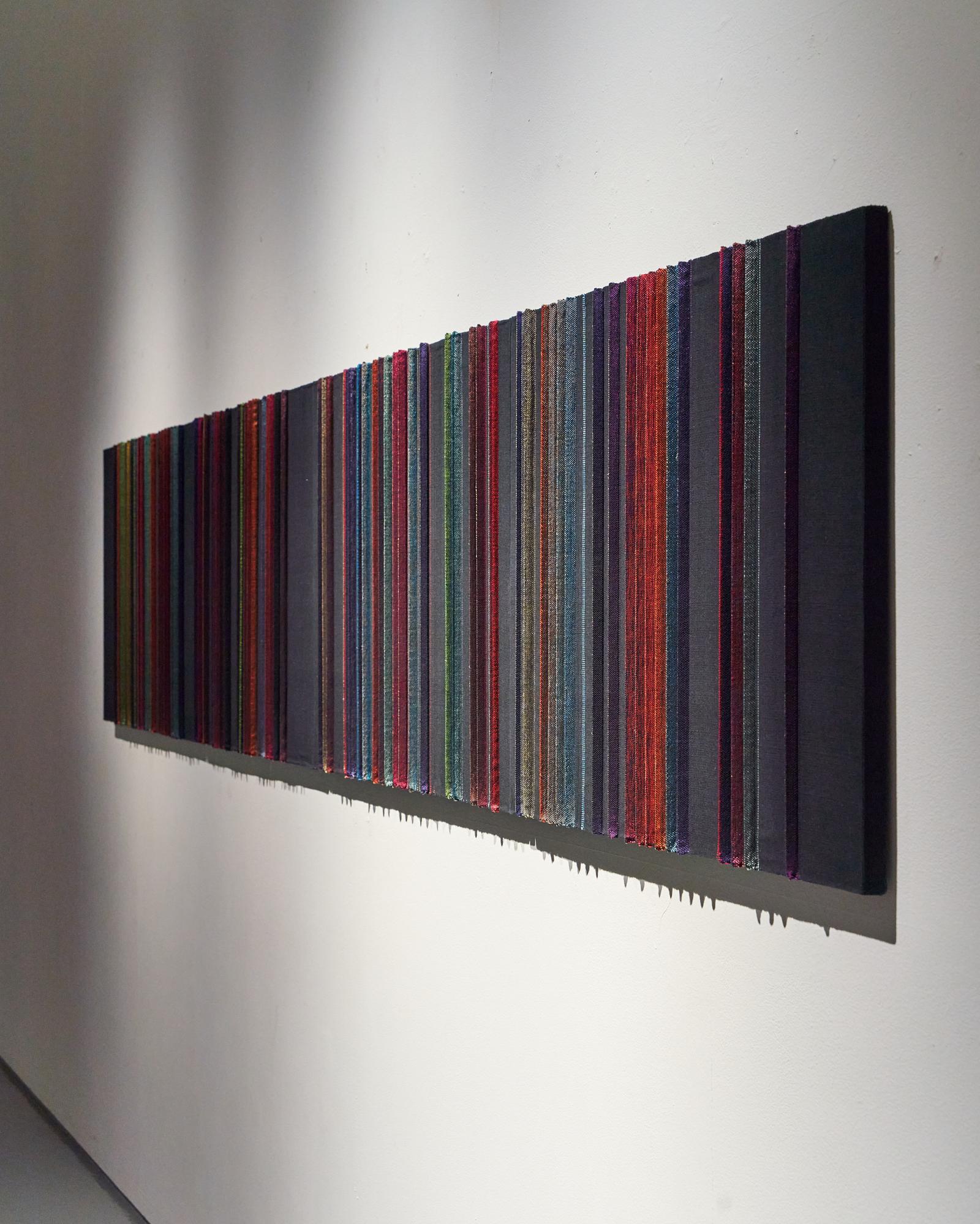 Through algorithms that encode collected sounds into frequencies and colors, Moon reimagines weaving as a medium of resonance between the material and immaterial. Threads, seen as metaphors for light, accumulate into fields of color, evoking illusions of space and synesthetic experiences where sight, sound, and touch converge.